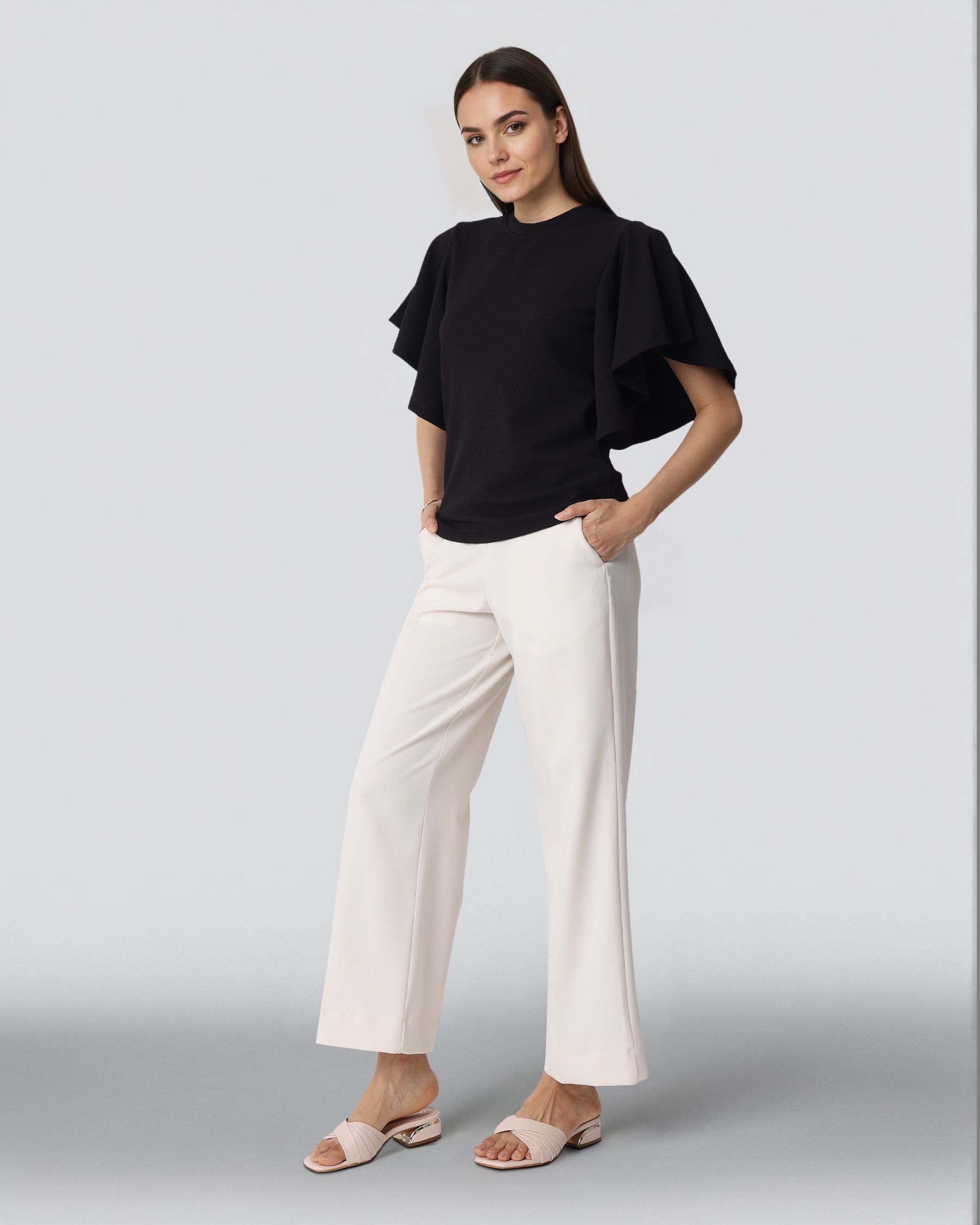 Chic Evening Look: Add a pair of strappy heels or ankle boots and accessorize with statement earrings or a bold clutch. A red lip and loose waves will elevate the outfit effortlessly."