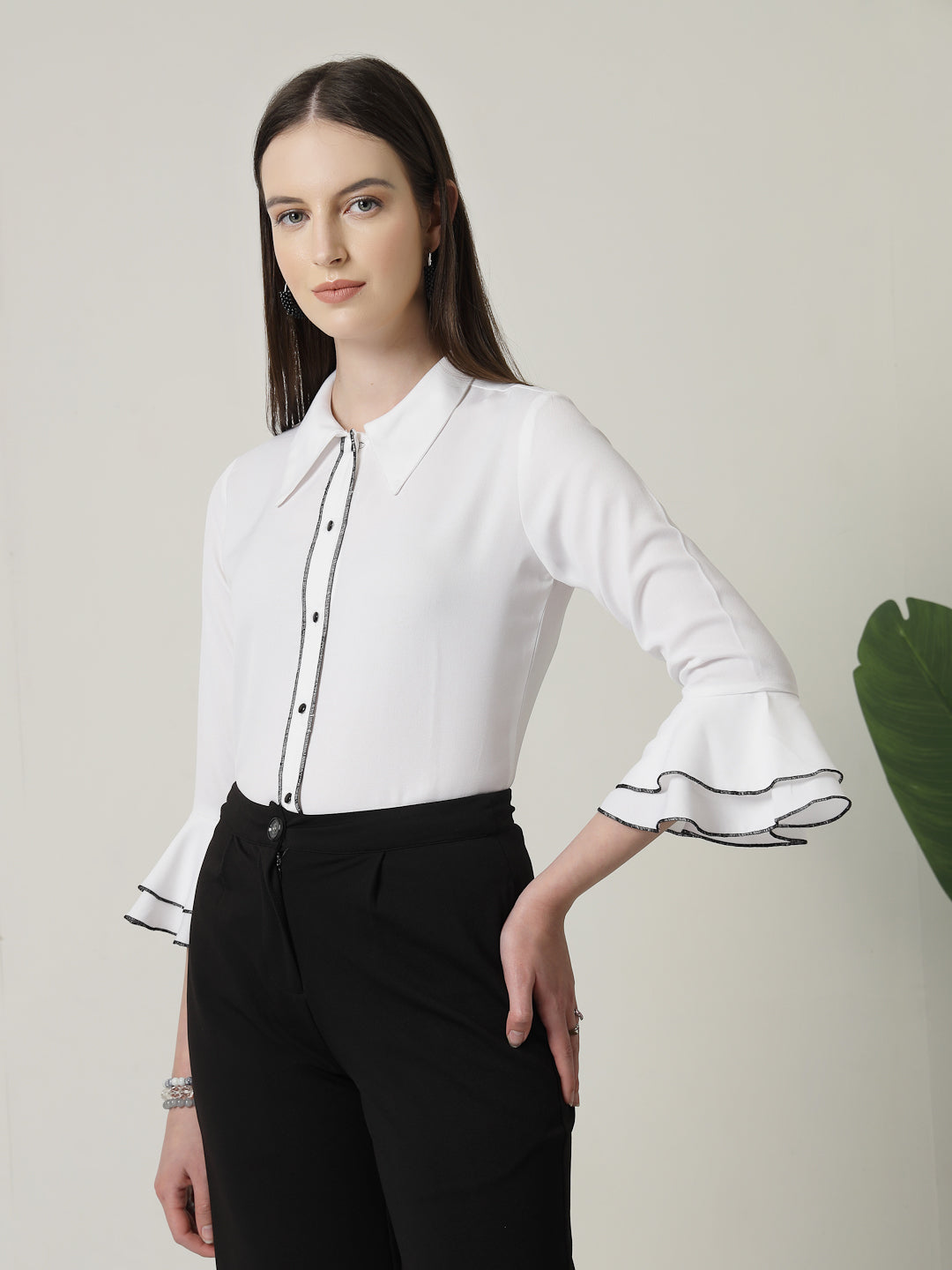 Style Quotient Women Solid White Regular Fit Polyester Bell Sleeve Formal Shirt