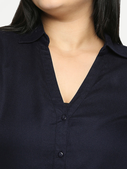 Style Quotient Women Solid Navy Viscose Rayon Formal Shirt